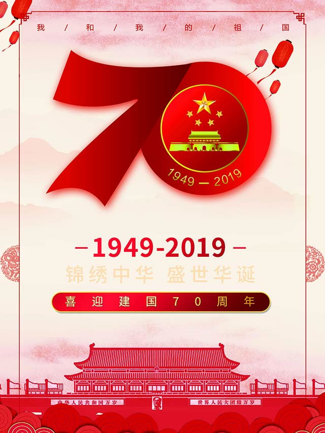 2019年10月1日祖國成立70周年,河北宏發(fā)機(jī)械有限公司全體成員祝福祖國的明天,天更藍(lán)、山更綠、水更清,經(jīng)濟(jì)更繁榮、人民更幸福、國力更強(qiáng)盛。